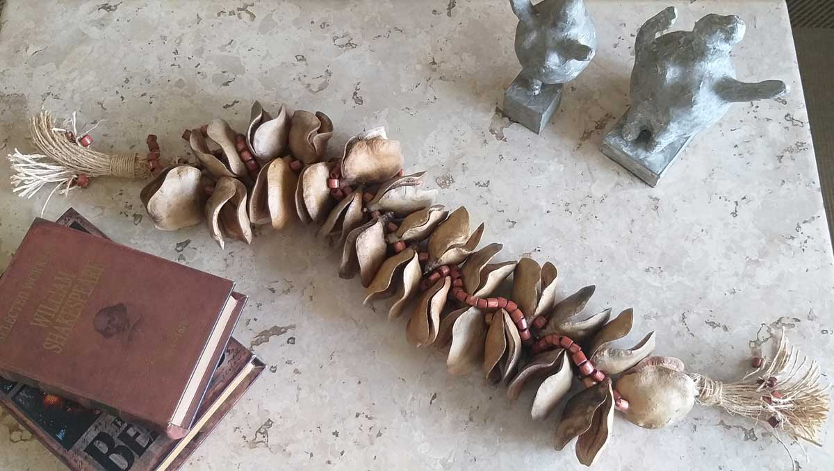 Semente de jacarandá boca de sapo e madeira.